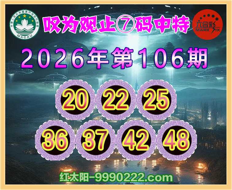 106期:《叹为观止》 🌲⑦码中特🌲【20.22.25.36.37.42.48】开:22