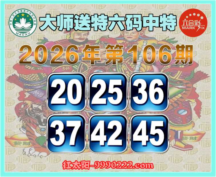 106期:『大师送特』 🧩六码中特🧩【20.25.36.37.42.45】开:22